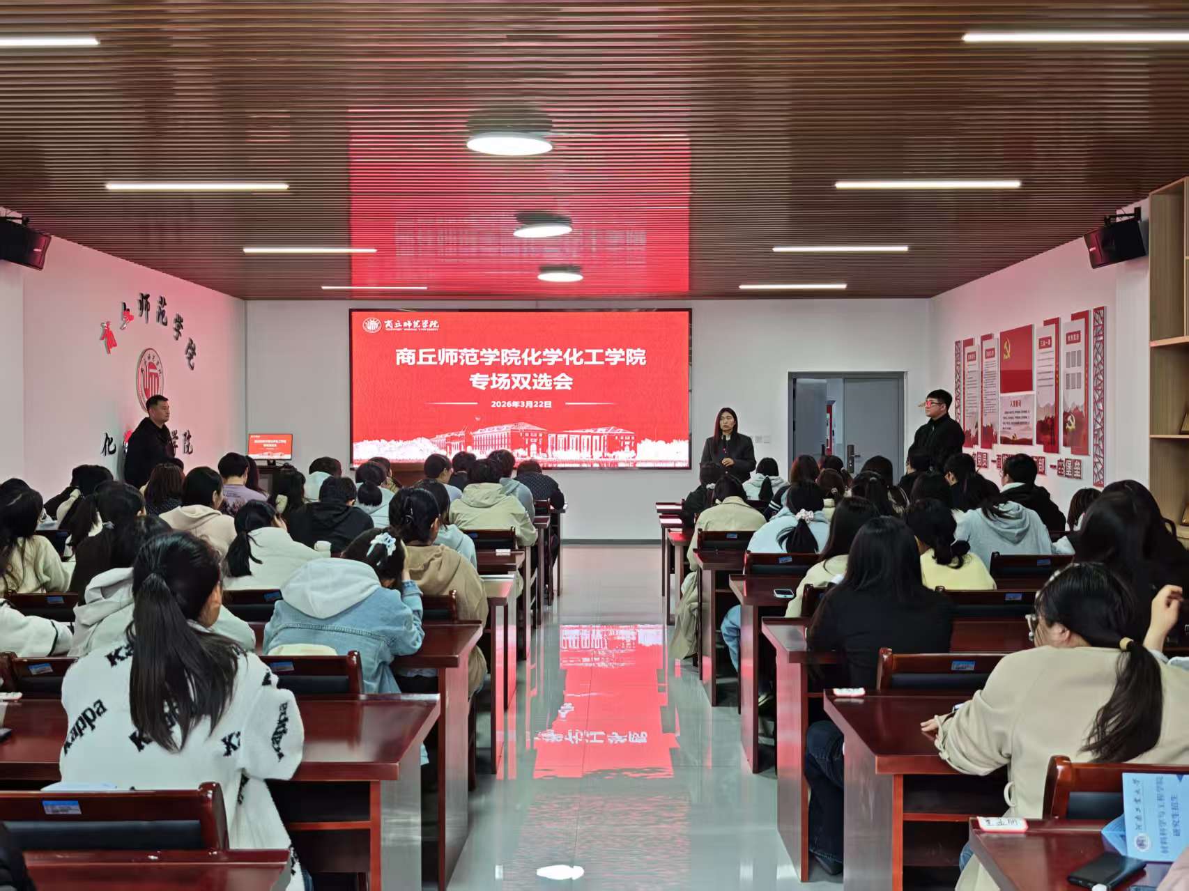 3月22日,77779193永利2026届毕业生专场双选会在睢阳校区工科实训大楼一楼成功举办。本次活动通过线下集中对接与政策宣讲相结合的方式,搭建起用人单位、高校与毕业生高效交流的平台。校创新创业教育与就业指导服务中心主任杨莹莹、副主任李振彪到场指导,学院全体领导班子、全体辅导员参加活动,并全程组织协调与现场服务。