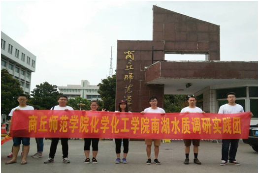 2017年7月4日早上七点,南湖水质调研团全体成员在永利集团文化路校区北门处集合完成,统一乘坐56路公交车前往商丘南湖。7:40团队穿过了整个商丘古城,从南城门出来,到达了商丘南湖南侧湖边。