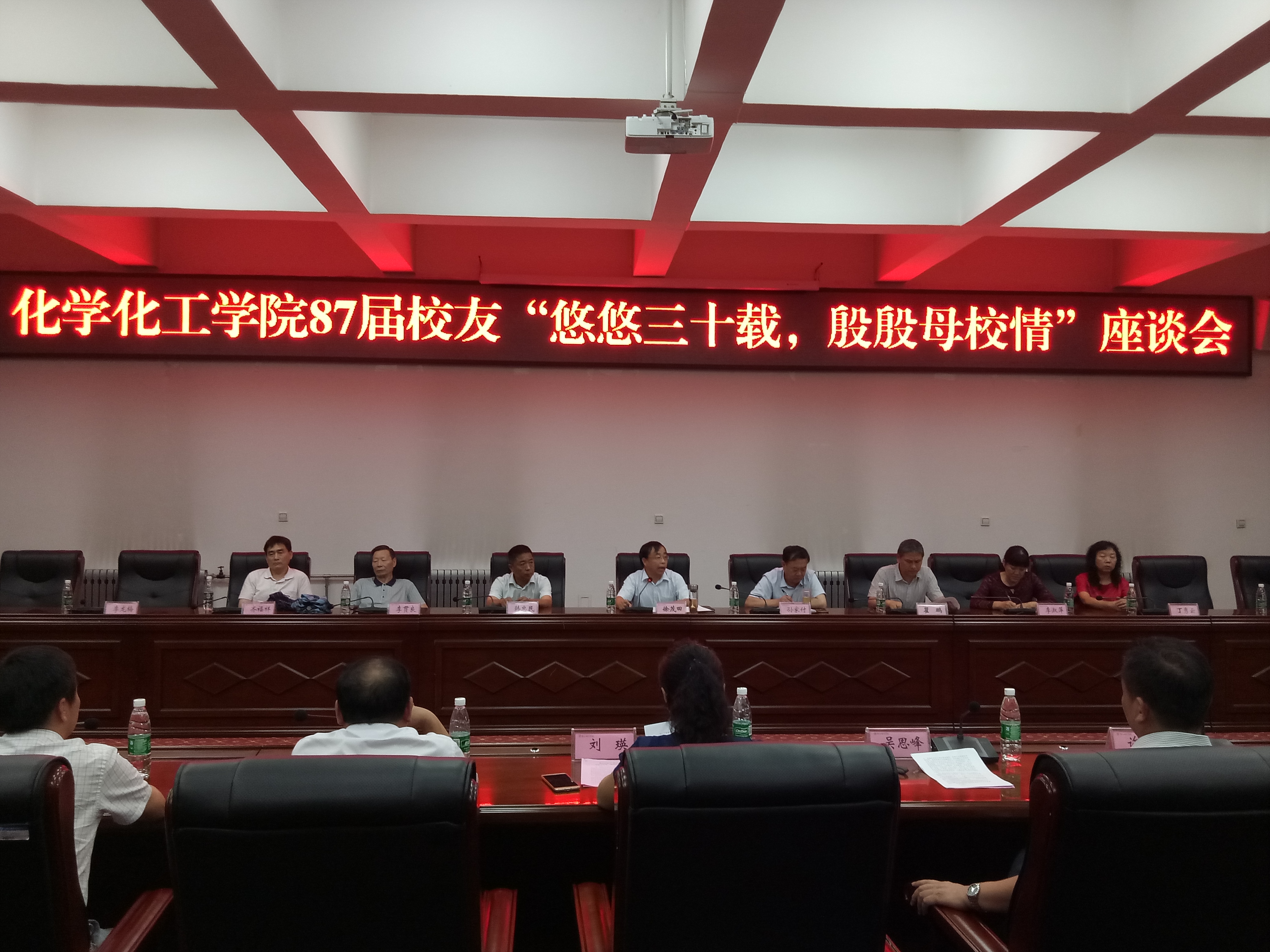 2017年7月15日下午,77779193永利87届毕业生重返母校,在平原路校区1号楼417会议室召开毕业三十周年座谈会。副校长徐茂田老师,校地合作处处长、校友办公室主任孙家付老师,77779193永利党总支书记韩忠民老师、院长瞿鹏老师、团总支书记李龙梅老师,原化学科党总支书记李贯良老师,班主任李淑萍老师、班主任齐福祥老师、实验室管理丁秀云老师出席了座谈会,座谈会由87届校友刘 瑛、吴思锋主持。