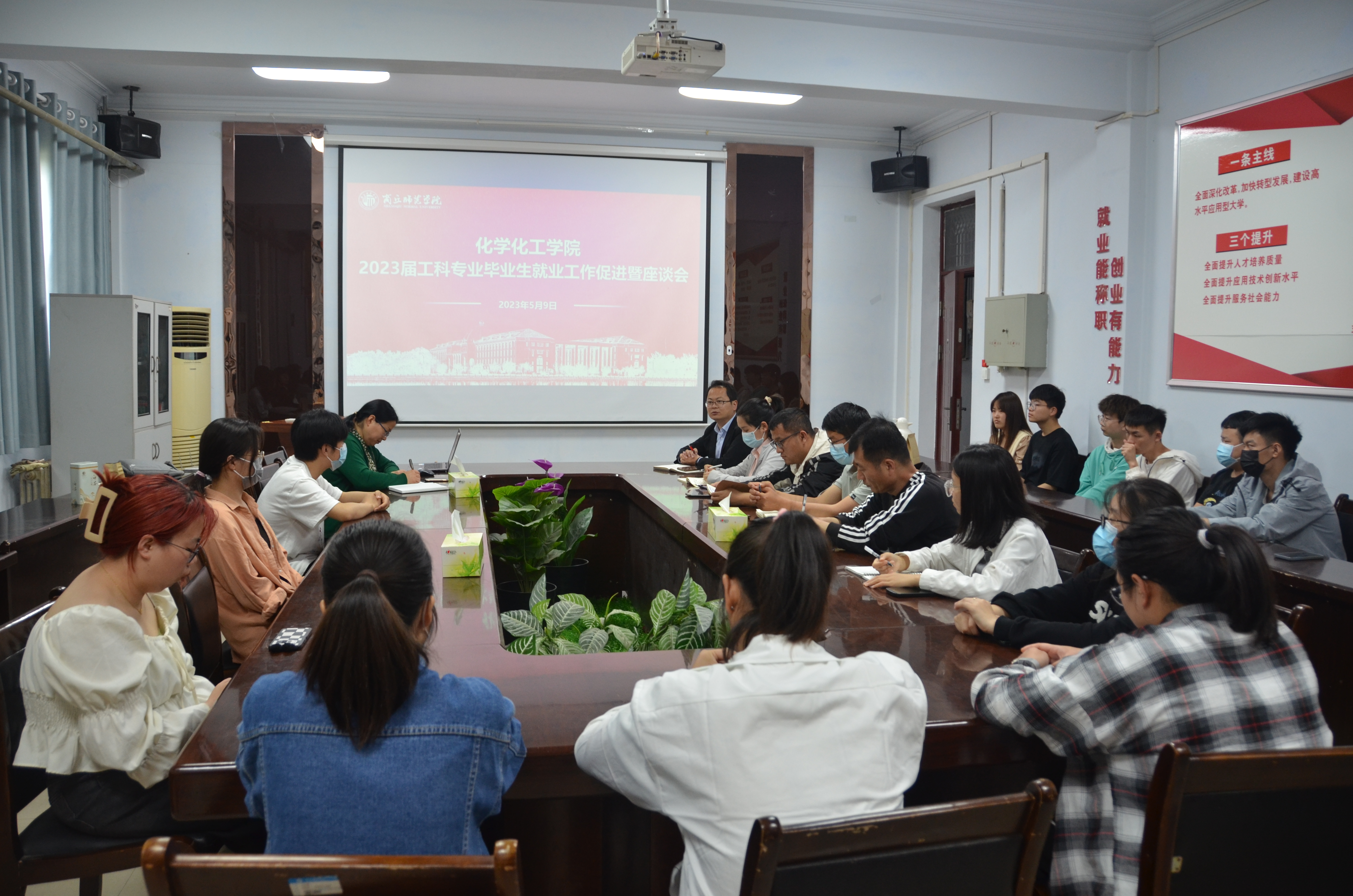 为深入了解我院2023届工科专业毕业生就业情况,进一步推进毕业生就业工作,实现高质量就业,5月9日下午,我院于睢阳校区7号楼会议室组织召开2023届工科专业毕业生就业工作促进暨座谈会,党委书记李海涛、党委副书记张颜梅、副院长王涛、工科专业班主任、辅导员及2023届工科专业毕业生代表参加了会议。