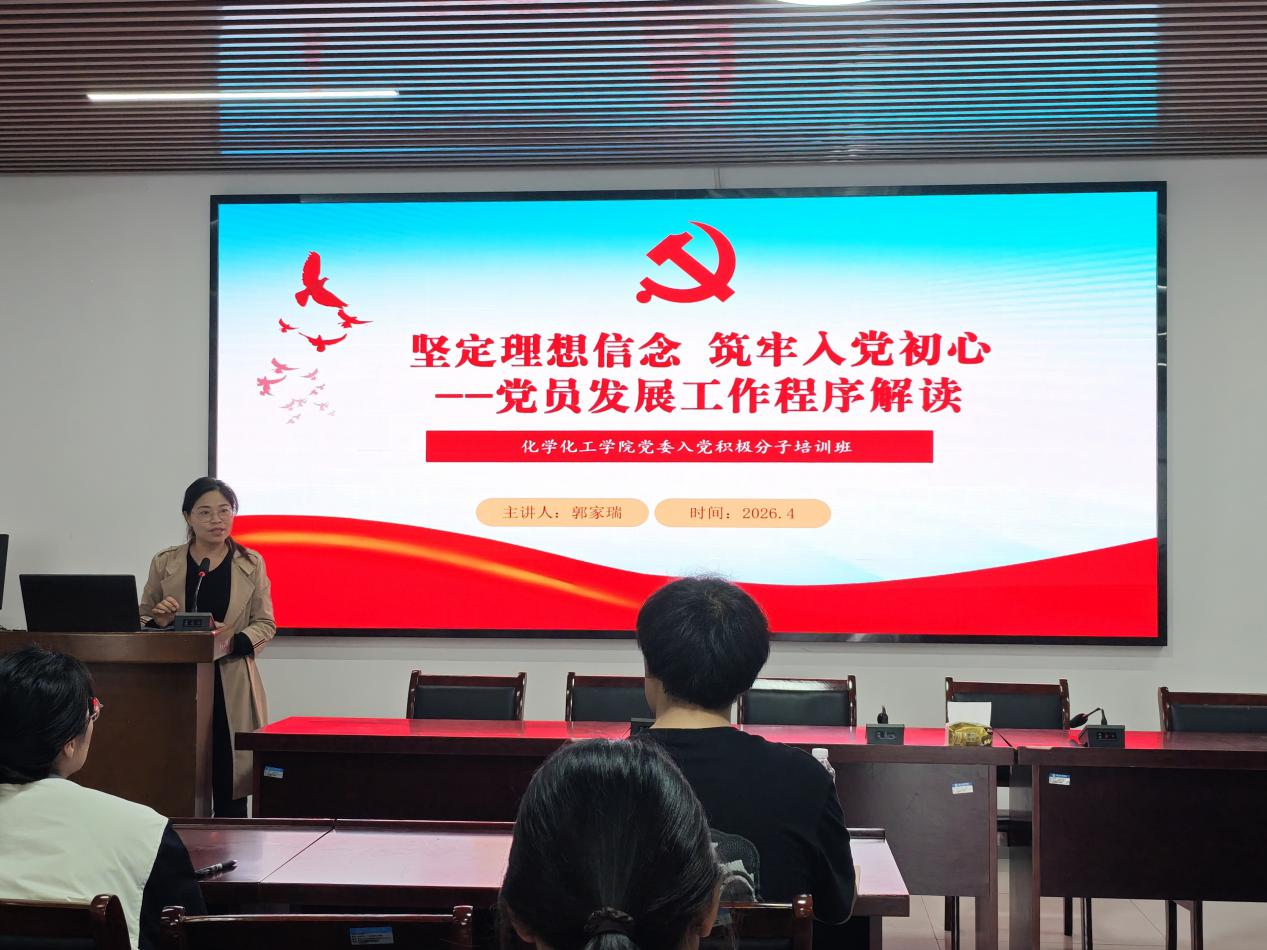 4月15日,学生第四党支部书记郭家瑞,以“坚定理想信念 筑牢入党初心”为主题,围绕党员发展全流程进行系统解读。她从申请入党、积极分子培养、发展对象考察到预备党员接收与转正等关键环节,逐条明确了各阶段的标准要求与程序规范,深入讲解了党员发展工作的政治性、严肃性与规范性。勉励学员端正入党动机,以高标准严格要求自己,在思想上、行动上积极向党组织靠拢,以实际行动争取早日加入中国共产党。