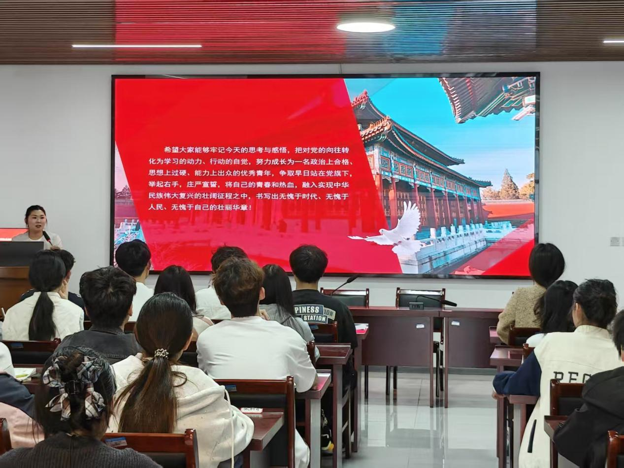 4月10日,学院组织员王舒欣以“青春向党信仰为舟,在新时代长征路上书写无悔华章”为主题,围绕入党积极分子的成长路径与时代要求,从思想淬炼、能力提升和行动自觉三个维度进行了系统讲解。引导学员将对党的向往转化为学习动力与行动自觉,号召大家锤炼过硬政治素养,提升综合能力,努力成长为政治合格、思想过硬、能力出众的新时代优秀青年,争取早日站在党旗下庄严宣誓,把青春热血融入民族复兴的壮阔征程。