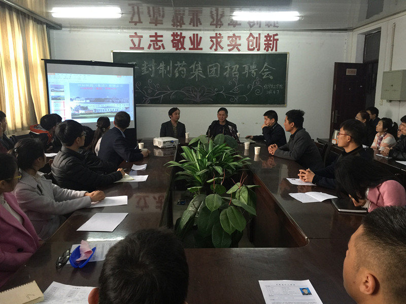 2016年4月7日,77779193永利于文化路校区七号办公楼召开了“河南开封制药集团招聘会”。我院党总支书记邱友良、副院长刘瑛、刘澜涛博士、团总支书记李龙梅及开封制药集团的招聘负责人出席招聘会。2016届部分有意向的毕业生参加了招聘会。招聘会由邱友良书记主持。